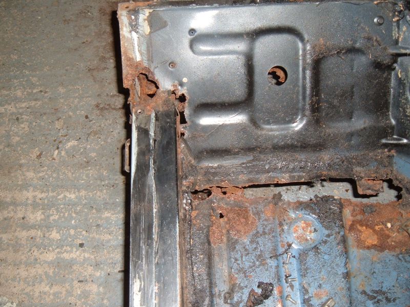 The car had been botched for an MOT in the past with huge plates under the front floor. These plates were easy to remove (using a screwdriver) as they hadn't been fastened on all that well.