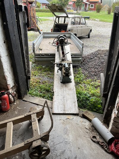 We already made up the deal last time i visited so it was a matter of loading eveything on trailer and inside the car. Put the engine centered on the trailer sitting on the R4 tyre ten som pieces of wood att strategically places in front and then rached with the straps then som dirt protection last handshake and home we go. First thing to do is to fill her up 260km on 20,1L E10 feels great (0.75L/10km).