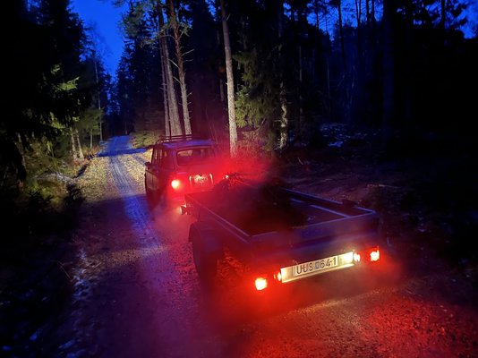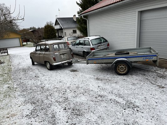 With the preciuos load on the trailer we kept lawfully 80-90km/h on the way home sipping coffee from thermos, three hours plus later I was finally home. Almost exactly 7-hours and I am impressed with the comfort once you understand to sit like in a armchair instead of i car seat. Car has Canada heater so I didn´t even need to have fan on for keeping cabin warm, earlyer I had an opening in the fire wall due to lambda metering after I seald that off car became more quiet. The slower speed going home reveals in better fuel consumption even with 250kg extra load on the trailer.