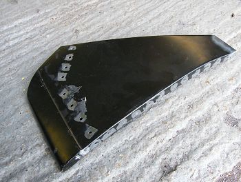 This doesn't entirely work. The apex panel is fairly flat and very poorly supported. Any welding on the panel distorts it out of shape, and the lower part either pops too far inwards or too far outwards. Trying to panel beat everything back into place just made things worse.