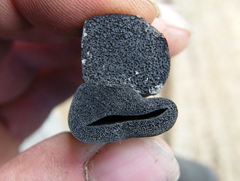 The original seal was of a solid expanded foam type which adjusts itself to the shape of the door over time. That's not ideal in itself as the seals aren't very flexible, and the slightest movement in the door frame will lead to gaps and wind noise.