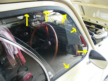I'm using GTL plastic side window frames on this car as the earlier steel ones have a habit of rusting and leaving rusty streaks down the bodywork. I've seen some cars with a thin foam behind the side window to help seal it to the door frame, but other cars have not been sealed. I suspect any sealing I have found has been aftermarket.