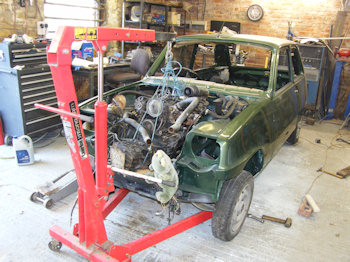 Pulling the engine out isn't too bad. The steering rack, driveshafts, bonnet and radiator are the big lumps that need to be removed first. Other than that it's just a case of undoing wiring and cables and gear linkages until the engine isn't connected to the car any more.
