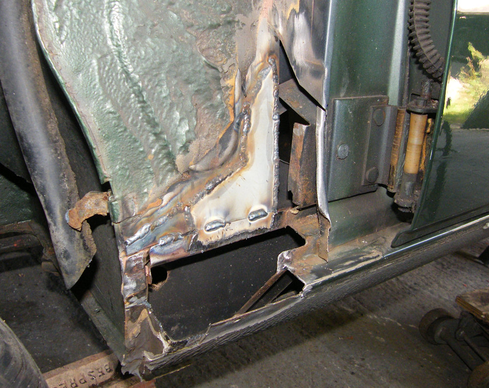 The new section was butt welded in, cleaned up with an angle grinder, then knocked flat to take out the inevitable distortion.